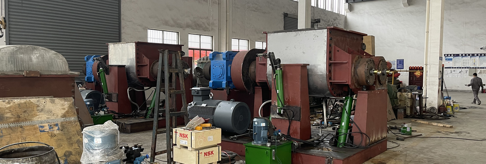 工廠擁有各類型專用生產設備30多臺套,具備車、刨、鏜、銑、焊等各種加工能力。大型機加工設備如CW61160L車床、T×6113C3/IV數控鏜床等等,滿足各種型號的捏合機的生產和加工。